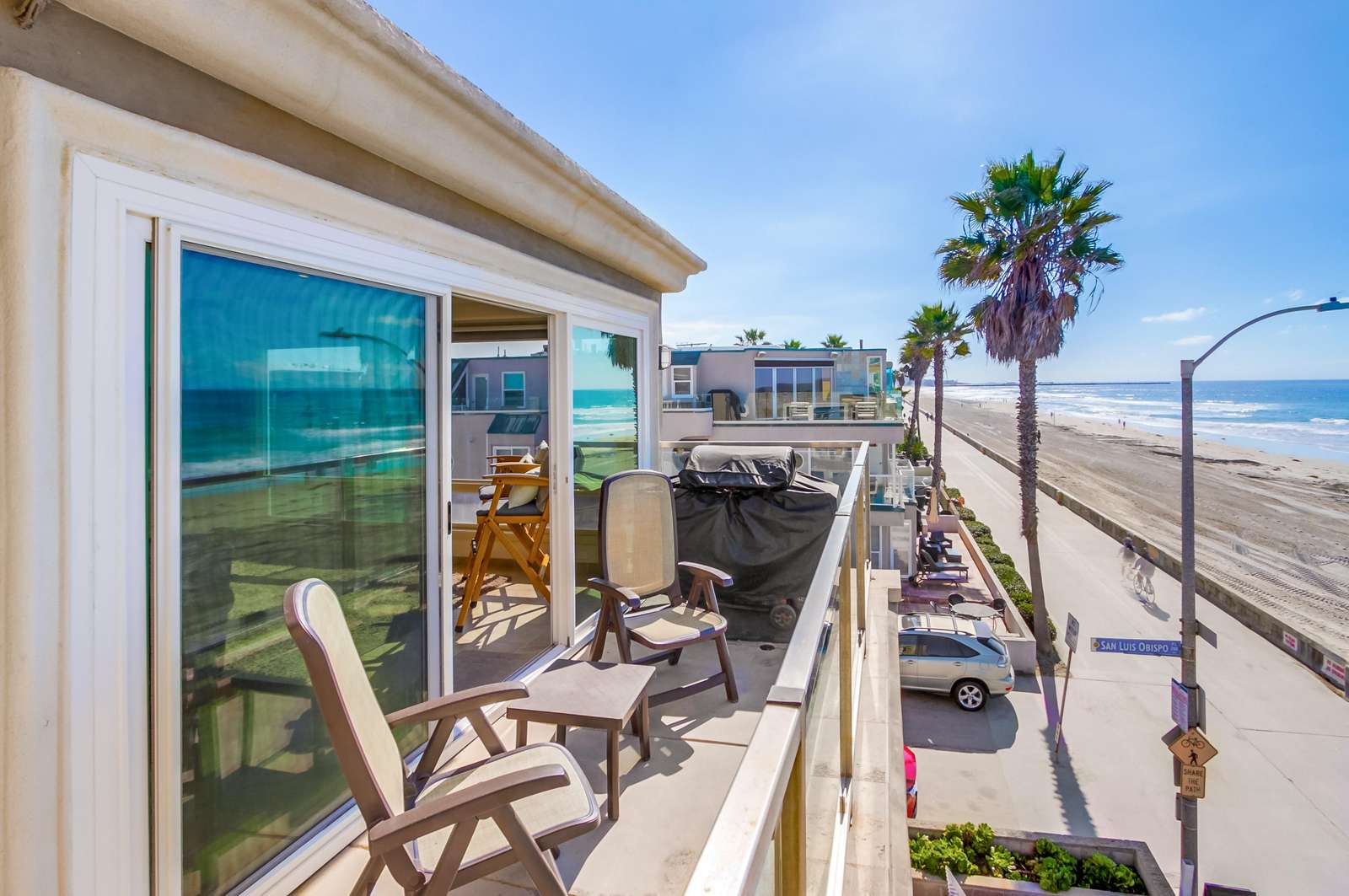 Luxury awaits for you in the HUGE penthouse with breathtaking views. Plenty of room to spread out and enjoy all that San Diego has to offer. Penthouse unit with no interior steps. Unit occupies the entire 3rd floor and gives a tremendous amount of privacy. Walk out the front door to the sand, enjoy all the fun that Mission Beach has to offer. Located conveniently within 15 minutes to the San Diego International Airport, Old Town, Downtown Gaslamp District, Petco Park, Convention Center, Sea World, Torrey Pines Golf Course, Qualcomm Stadium and many more local attractions. You can even stroll four blocks south to Belmont Park with it's historic roller coaster, shops and restaurants!