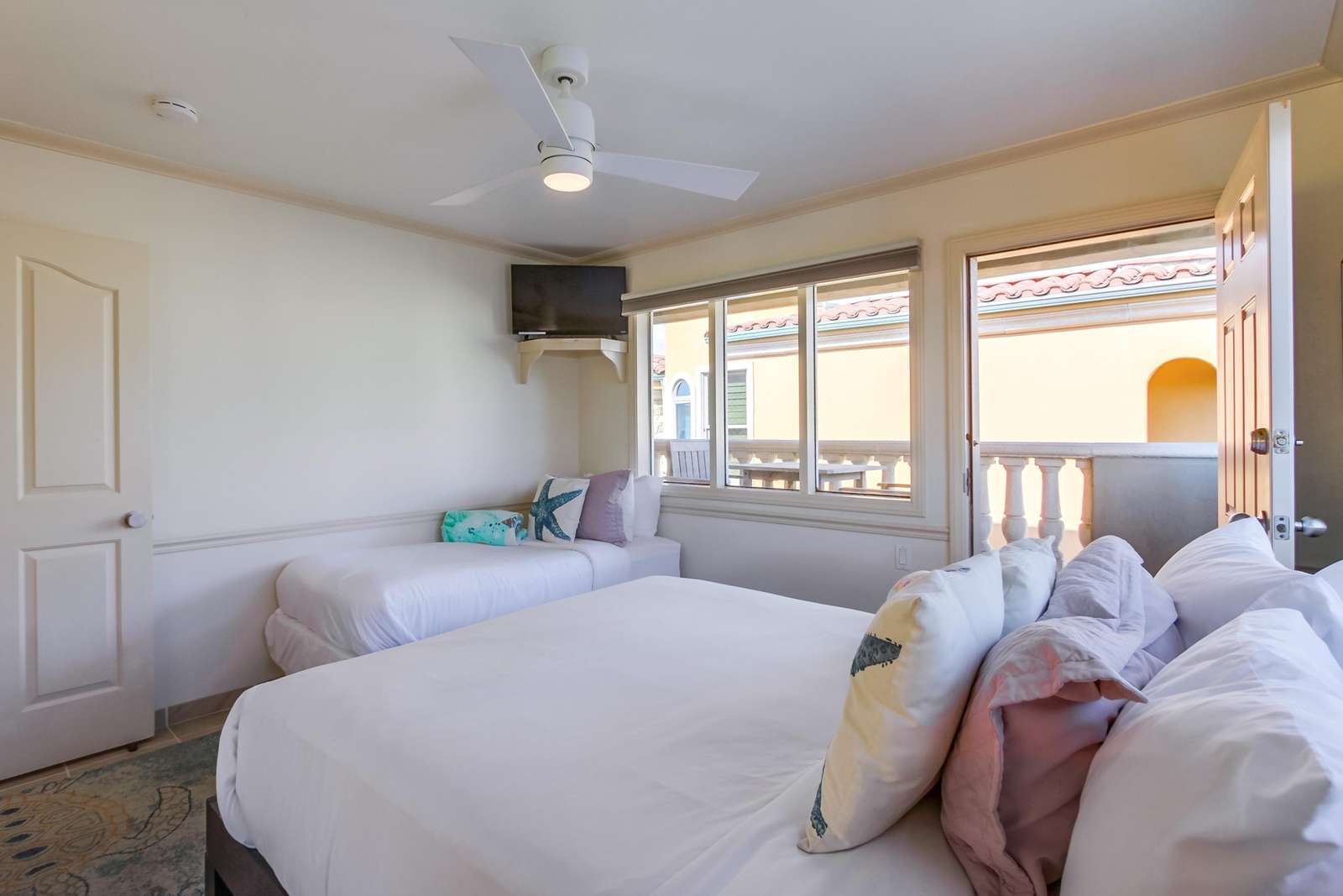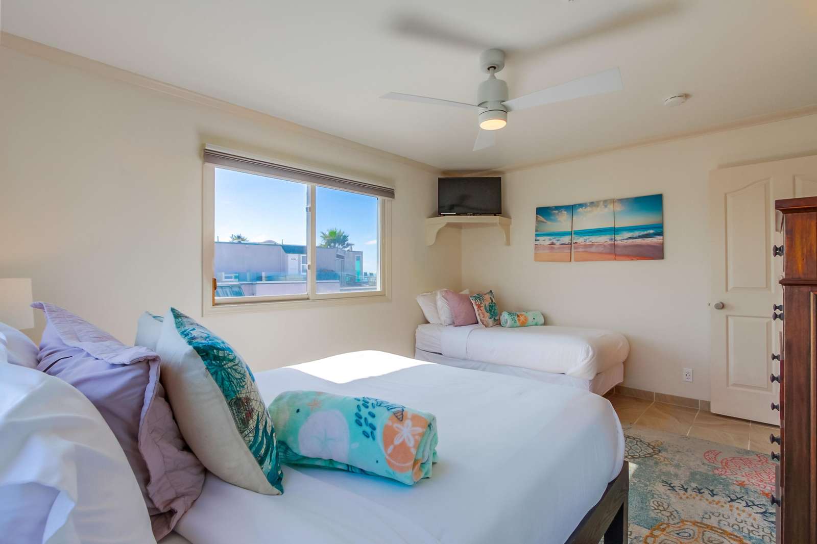 This large 1900 square foot three-bedroom non-smoking condo has been updated recently with all new sliding doors off the living room, master bedroom and even the kitchen has new windos as well for nice cross breeze of the ocean air. Paradise Retreat is the ideal vacation retreat, located on Ocean Front Walk, San Luis Obispo is the cross street. Easy boardwalk access and Ocean Front location. Quality furnishings adorn this home. Sleep on high end name brand mattress' and relax by the fire with top grain leather seating. The entire condo has all tile flooring with beautiful area rugs throughout to give a nice beach feel. Large dining table and 6 chairs for gathering and games. Kitchen bar also has additional seating. The master has a king bed, with a private ocean view balcony and full on suite bathroom with double vanity, jetted stub, large shower. The second bedroom has a queen bed and twin bed, the third bedroom has a queen bed and twin bed, there is an additional queen blow up mattress that can be used in the living room. 10 people can sleep comfortably, all the bedrooms have cable TV's and fans. Your vacation home also features free wireless internet service. We have beach cruiser bikes, boogie boards, beach chairs, beach toys, beach umbrellas, surf boards, long boards, and razor scooters for your fun day at the beach!