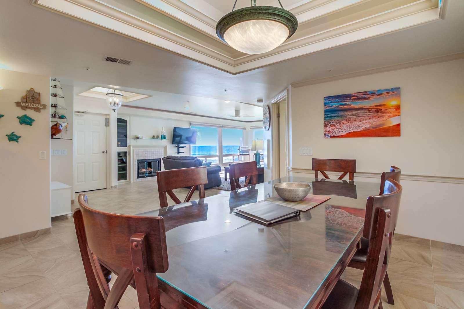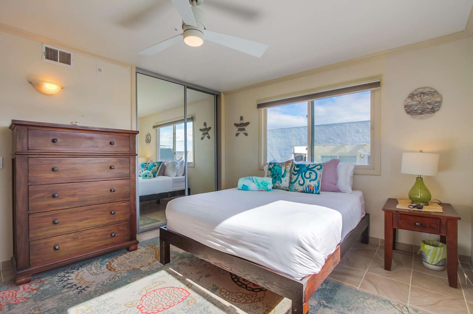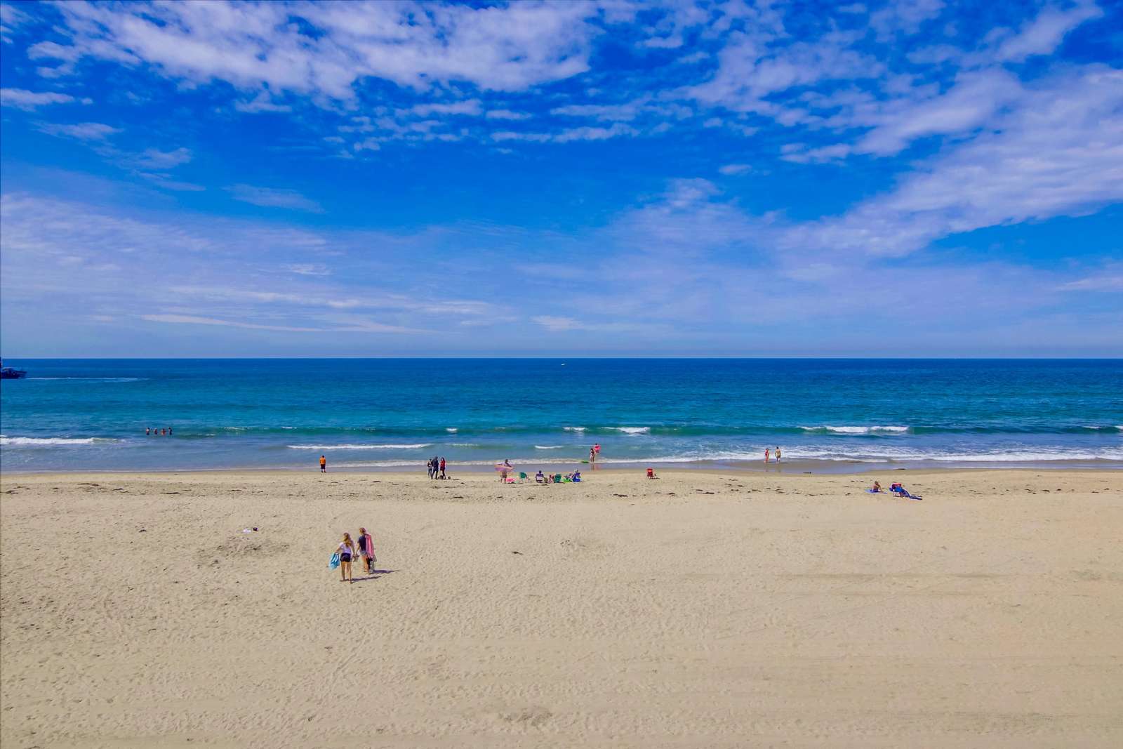 Perfect for entertaining with a large kitchen, dining area, and a large living room complete with flat screen TV. Kitchen is fully stocked with all new stainless steel appliances. The magnificent balcony with a bar and chairs is a fun area to eat, drink, and enjoy the people watching as the sun sets below the Pacific Ocean. Many tourists and locals travel up and down the paved walkway which runs for miles; it is a great spot to walk, jog, roller blade, or bike.