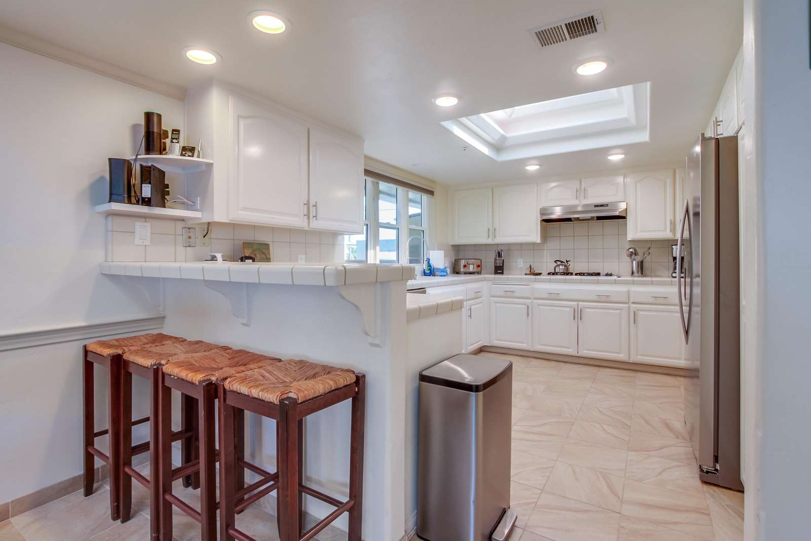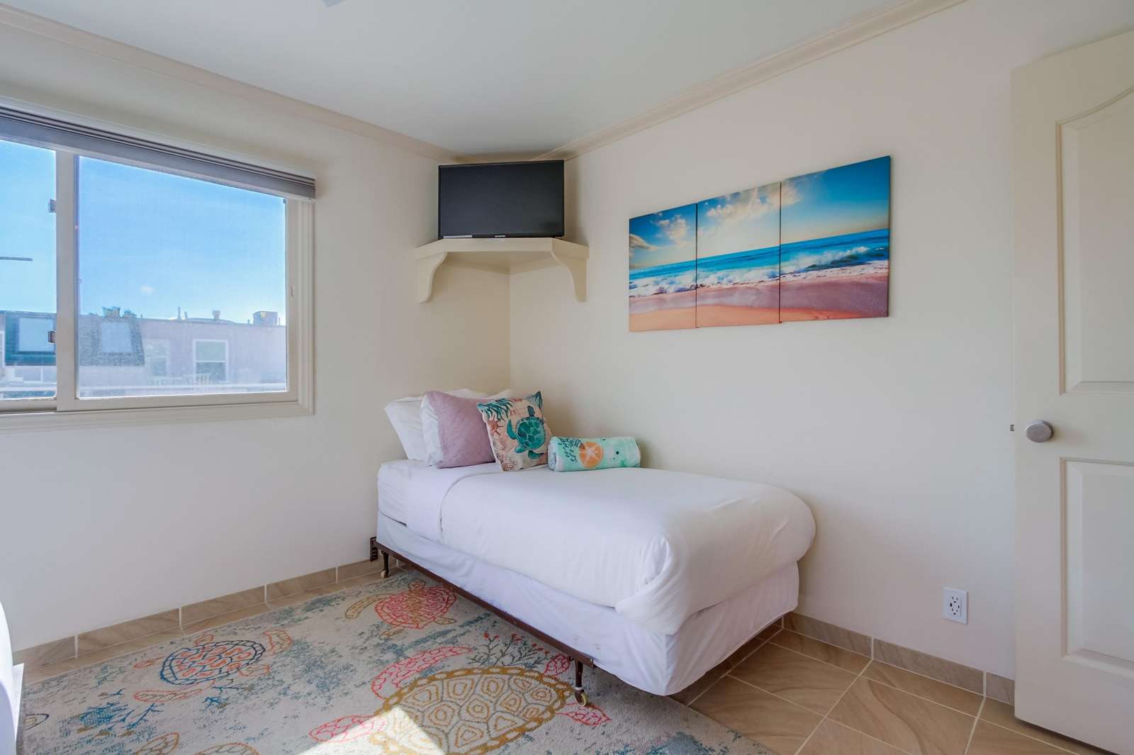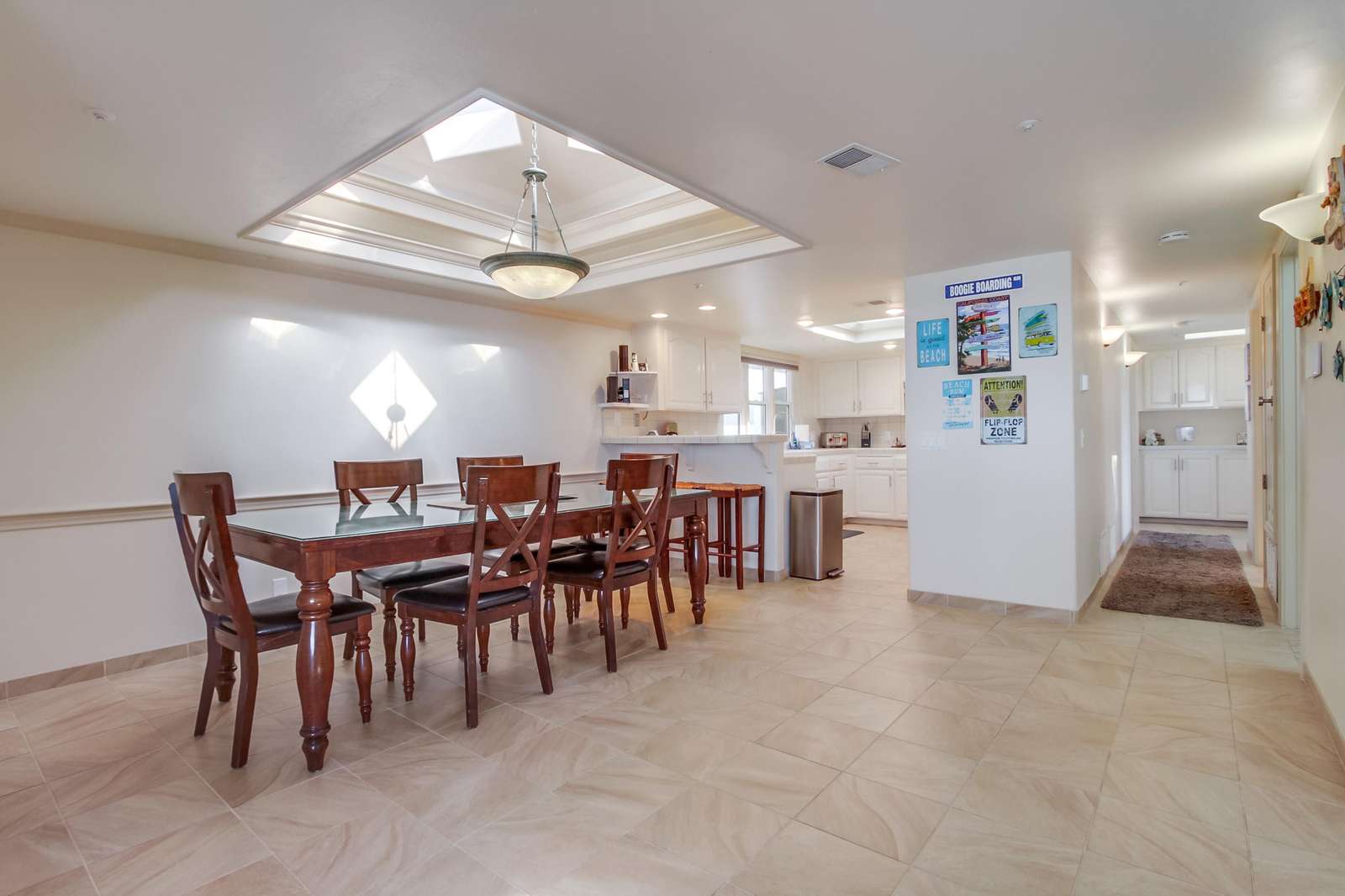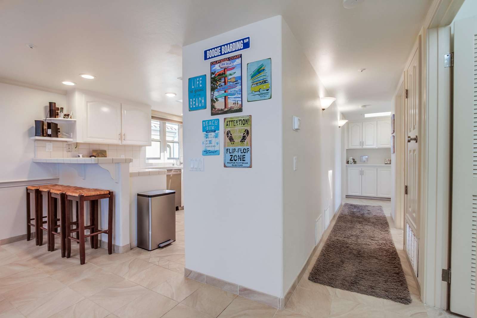 Perfect for entertaining with a large kitchen, dining area, and a large living room complete with flat screen TV. Kitchen is fully stocked with all new stainless steel appliances. The magnificent balcony with a bar and chairs is a fun area to eat, drink, and enjoy the people watching as the sun sets below the Pacific Ocean. Many tourists and locals travel up and down the paved walkway which runs for miles; it is a great spot to walk, jog, roller blade, or bike.